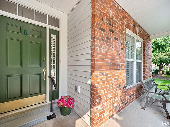 Located next to the beautifully landscaped neighborhood park with a gazebo, this lovey brick front 1-story villa has a NEW roof & partial siding (2024) & NEW composite deck (2025). Fantastic gated community blocks from Sams Club, Wal-Mart, 3 grocery stores, fun dining, and the best conveniences in St Charles. Soaring vaulted ceilings and plantation shutters on all the windows make the open main living area feel welcoming, including the living room with a gas fireplace. Spacious kitchen has 42" cabinets, pantry, breakfast bar and sunny breakfast room with a bay sliding door that opens to the deck and patio. French doors lead to the primary suite with a walk-in closet, 9' ceilings and private bath with soaking tub, seated shower, and separate vanities. The guest bedroom has 9' ceilings and its own full bath as well. Handy main floor laundry. Lookout lower level with a roughed-in bath provides plentiful storage, or could be finished to add more living space. HOA takes care of mowing, landscape trimming, snow removal and more so you can relax and enjoy your free time. Outstanding home in a fabulous location! See it today!