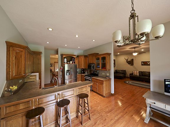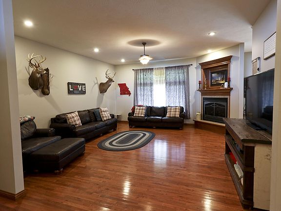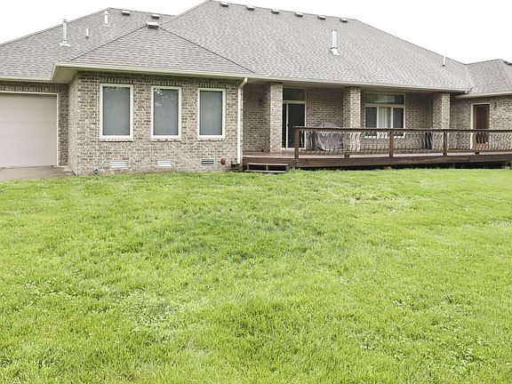 All we need is a big bow to ''wrap this gift!'' All brick beauty on 2.6 ac of a lovely landscaped lawn!Drive-thru garage large enough to store most boats w/truck!Massive room sizes due to 3100 sq ft on ONE LEVEL with no stairs!Hardwood flooring thru majority..formal dining,entry,living room& kitchen!NEW heat pump with propane back-up..95+ efficiency..NEW waterprrof,lifetime guaranteed Shaw carpet,NEWer appliances,and duct work cleaned last yr.Split bedroom plan with master hosting jetted tub and LARGE, TILED WALK -in shower!Spacious laundry room with utility sink,abundant kitchen cabinetry..1 bedroom has private hallway/perfect for office or guests.. Within 10 min of Nixa schools..south of Nixa so quick trip to lake access...call for your private showing today! Sq ftge from previous listin