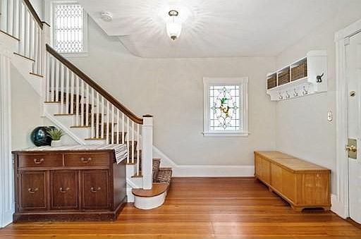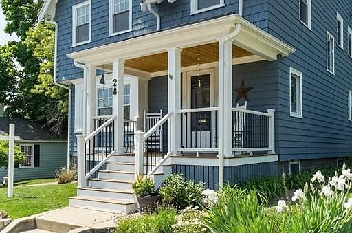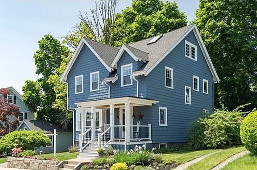 Four-bedroom colonial located in the desirable Roslindale neighborhood on quiet dead end street. This charming home offers a spacious foyer w/French doors opening to a bright living room & formal dining room. Modern eat-in kitchen w/granite center island & countertops, stainless steel appliances, cherry cabinets, oversized pantry, 1/2 bath with laundry and direct access to private yard. Second floor has three spacious bedrooms and nook for an office. Incredible full bathroom with double sink & tall vanity for extra storage, separate room w/toilet & shower for privacy. Third floor bedroom with an additional room for a reading room or lounge. Fern hardwood floors. Spacious basement w/easy access from the yard. Private professionally landscaped fenced yard with stone patio. One car garage & additional off street parking in driveway. Amenities: Bellevue Hill Park, Roslindale Village & Centre Street. Public transit: Bus (24,35,36,37), Commuter Rail (Highland & Bellevue)