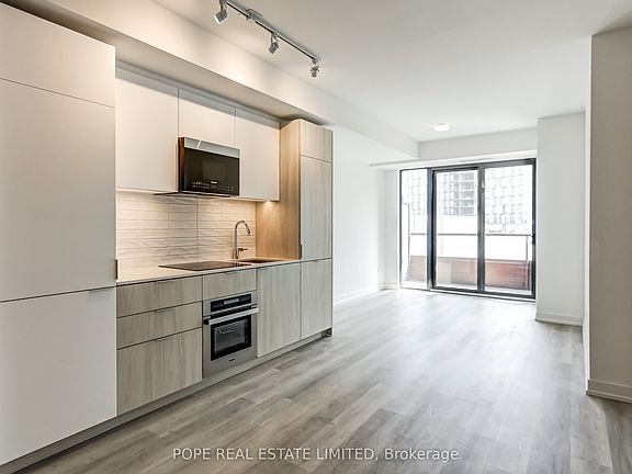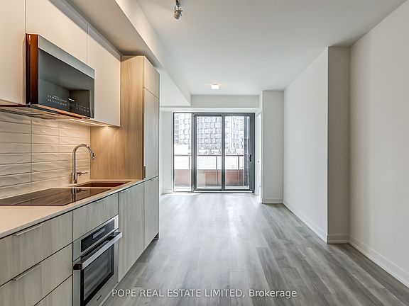 28 Eastern Avenue. Recently completed and registered by Alterra. Architecture by Teeple Architects and interiors by Truong Ly Design Inc. The midrise condominium, 12 floors, is conveniently located in the historic Corktown neighborhood. It is walking distance to the shops, restaurants and amenities of the Distillery District, Canary District, Riverside & St Lawrence Market. This new condominium property is nearby to some of the most enviable amenities on the lower east side, such as the future Corktown Station of the Ontario Line, the existing TTC 504 A & B streetcars, Corktown Commons, Don River Park, Cooper Koo Family YMCA, Lake Ontario waterfront,the DVP, Lake Shore, the Gardiner Expressway, the future East Harbour transit hub, Ookwemin Minising (Toronto's newest precinct in the Toronto Port Lands) and the recently completed Biidaasige Park (49 acre park). The new and never occupied apartment showcases 645 sf of interior space, a 44 sf sunny south facing balcony, 2 bedrooms, 2 bathrooms, 9 foot ceilings, laminate floors throughout, a warm palette of interior finishes, a modern kitchen complete with built-in appliances, quartz countertop & tile backsplash and 2 modern crisp & stylish bathrooms. The building showcases approximately 17,000 sf of indoor and outdoor amenity space complete with 24 hour concierge, onsite property management office, lobby lounge, party room, billiards room, family room, fitness studio, co-working space, media lounge, pet spa, parcel storage, conference room, sculpture garden, on-site car share, bicycle repair station and dedicated bicycle storage rooms, outdoor amenities are complete with a courtyard terrace, private outdoor workpods, rooftop terrace, sun deck, BBQ grilling station, dining, lounger area and a dog run & visitor parking.