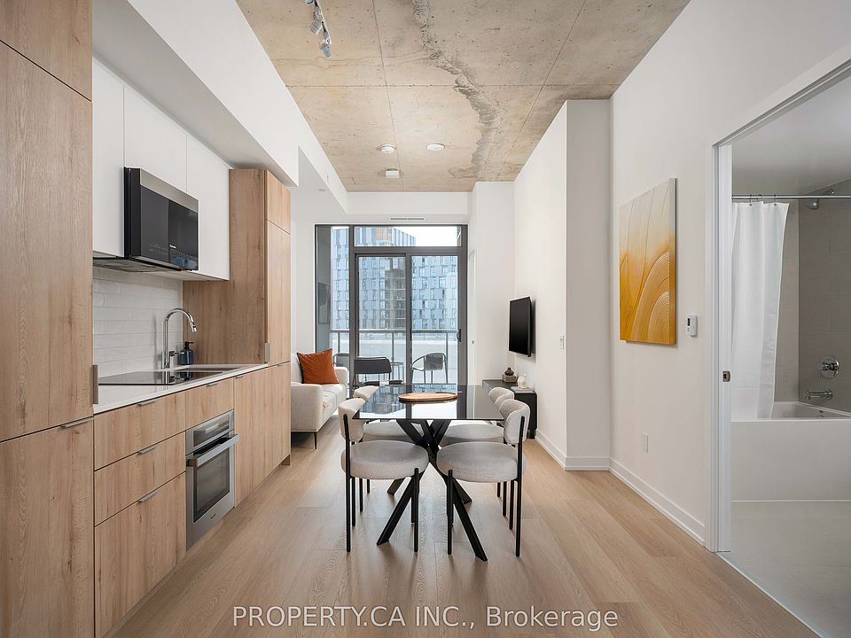 Experience the comfort and convenience of city living at 28 Eastern Ave #618. This brand-new inviting 645-square-foot suite features a thoughtful layout with two bedrooms and two bathrooms, complemented by a sunny south-facing exposure and a private balcony perfect for relaxing. With 10 Foot Ceilings, and a soft loft feel, you will definitely be wowed as you enter your new suite. The kitchen is ready to welcome your culinary needs, fully equipped with stainless steel Panasonic appliances, including a fridge, stove, over-the-range hood, dishwasher, and microwave, alongside an ensuite Samsung washer and dryer. For your peace of mind, the lease includes heat, one underground parking space near the elevator, and one owned locker that is larger than a standard locker. You have amazing views of Downtown Toronto from your balcony, be the envy of your friends. Residents are invited to enjoy building amenities such as a gym, party room, media room, concierge service, and a rooftop deck. Ideally situated near Front St E and Eastern Ave, you are steps away from inviting local dining, the historic Distillery District, and easy public transit options.