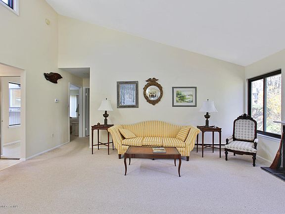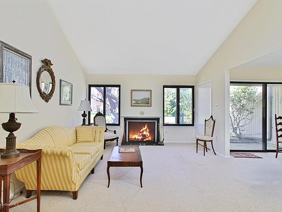 Located on the golf course, this desirable 2 bedroom Villa 100 has wonderful open floor plan with vaulted ceilings and wood burning fireplace in the living room. The skylight in the kitchen makes the room sunny and bright with lots of counter space and direct entry into the two car garage. Neutral carpeting and sliders to deck area overlooks golf course. Association is in the process of upgrading the siding, putting in two new garage doors, and moldings. With some TLC, this could be an exceptional place to live. An active gated community offering golf, tennis, clubhouse, lake and many activities. A great lifestyle! All room sizes are approximate and square footage was taken from tax records. Zip code is Red Bank but home located in Middletown.