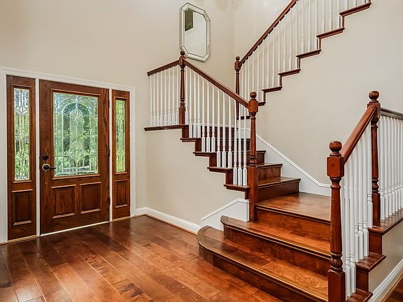 Fine executive home in desirable, gated Stonecastle. Features cherry cabinets and quartz counters, stainless steel appliances, kitchen open to family room, fabulous pool and waterfall. Beautifully designed with many custom features. Enjoy the peaceful setting by the pool/hot tub. Private park-like yard with wooded hills and lawn for play.