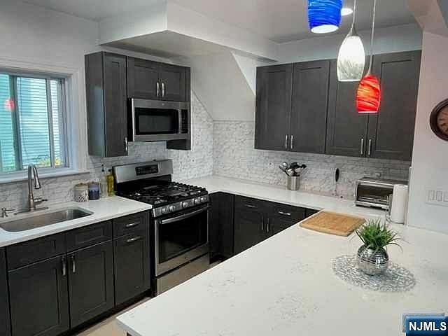 Pretty updated Colonial with high ceilings and an open floor plan. Come inside to an oversized Living Room which is open to the Dining Room, as well as open to a beautifully updated quartz-countered, island kitchen. There's a shower stall bath on the first floor and a Mud Room with a door to the yard. The Second floor features 3 bedrooms and an updated full bathroom. There's also a Large, finished 3rd floor office/study. Basement. Detached garage and a Fenced yard. Solar panels. There's also easy access to NYC buses and routes:#46,#95 & 80 and it's close to Grant Elementary School..