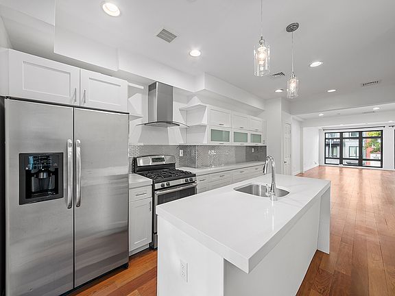 Bright, renovated, Bushwick beauty with outdoor space, central air and vented W/D 28 Eldert Street, unit 2 is an 18ft wide duplex located in the heart of Bushwick. Constructed 10 years ago, this beautiful 1,800sf home features 3 bedrooms, 2.5 bathrooms, central air, in unit W/D, large windows that bring in all day light, a terrace off the primary bedroom, and a spacious backyard (shared with the downstairs unit) with mature trees for excellent shade cover and privacy. The main level boasts a massive living/dining room expanse that is almost 30ft long, with an open kitchen and separate eating nook, floor-to-ceiling windows, and a powder room and coat closet. The kitchen features stainless steel GE appliances, a large refrigerator, full-size oven and dishwasher, and white quartz countertops. A balcony off the kitchen provides access to the large garden below. Upstairs, you will find the three bedrooms, a vented full-size W/D, and two full bathrooms. The primary bedroom features an en-suite bathroom, custom closets, as well as a balcony overlooking the backyard. Conveniently located a few blocks from the J/M trains and 10 minutes to the L train and Irving Square Park. Sorry, no pets.