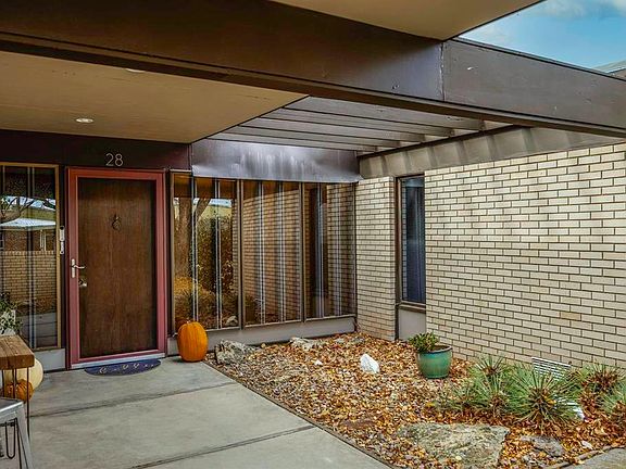 Discover one of Montrose’s truly special homes—an iconic Mid-Century residence tucked at the end of a quiet cul-de-sac in the heart of town. Set on a beautifully landscaped 0.37-acre lot, this 4-bedroom home blends timeless design, warm natural materials, and exceptional indoor–outdoor living. Step inside to a spacious single-level layout featuring rich walnut floors, classic brick accents, and the clean lines and intentional simplicity mid-century homes are celebrated for. The living room centers around a statement gas fireplace, while the formal dining room offers space for gatherings and holidays. The kitchen flows seamlessly into a bright multi-use family room—currently used as a game room with built-ins—creating a versatile hub for daily living. Solid wood pocket doors throughout the home provide both charm and privacy. The primary suite includes a walk-in closet with built-in dresser and a relaxing jetted tub. Skylights add soft natural light, while hot-water baseboard heat and an evaporative cooler provide comfort year-round. Outside, the backyard is a true oasis. Mature trees create a cooling canopy, there’s even an apple tree, and the expansive covered patio—complete with natural gas hookup—is ideal for entertaining, dining, or unwinding. A south-facing sunroom is perfect for plant lovers or a quiet morning retreat. Car enthusiasts, hobbyists, or those seeking extra storage will appreciate the attached 2-car garage plus a separate detached garage—offering multiple possibilities, including workshop, studio, or conversion to an ADU (subject to buyer verification). This rare mid-century gem offers space, character, and an irreplaceable setting right in town. Homes like this don’t come along often—come experience it for yourself.