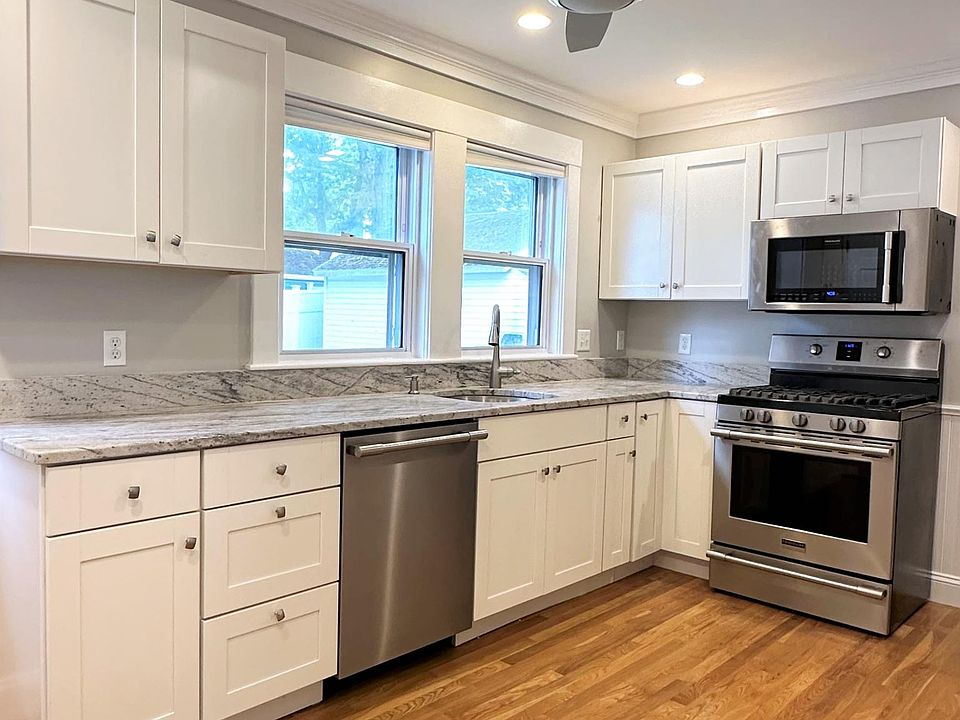 Beautiful, Remodeled 2 Bed/1 Bath Apt. in Milton! Washer/Dryer in Unit! -1st Floor Unit in a 2-Unit Building. Large in Sq. Ft. Freshly Painted Throughout! -Gleaming Hardwood Floors Throughout. -Large Open Living & Dining Area. -Living Area has Decorative Fire Place & Large Windows. -Separate 3 Season Porch off of Dining Area! -Updated Kitchen w/ Granite Countertop, Recessed Lights, Plenty of Cabinets, Stainless Steel Dishwasher, Gas Stove, Microwave, & Refrigerator. -In-Unit Washer/Dryer! -Master Bedroom can fit a King Bed w/ Deep Closet Space. -Second Bedroom can fit a Full Size Bed. -Updated Bathroom w/ Vanity, Linen Closet, and Standing Shower. -Shared Back Yard! -1 Garage Parking Spot Included! Plenty of Parking in Driveway. -Lots of Storage in Basement. -Tenants pay for utilities. -Located in a Nice, Quiet Residential Area. -MBTA Bus Stop within Walking Distance for Public Transportation. -Just a Few Minutes to East Milton Square! Plenty of Great Restaurants, Shops, Grocery Stores, Major Highway Access, & So Much More!