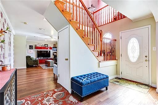 This custom colonial on a Corner lot boasts 5 Large bedrooms & 2 full baths, an Open plan Eat in kitchen which overlooks a beautifully manicured yard, perfect for entertaining! Formal Dining and Huge living room with Wood floors & 1 bedroom, full bath and laundry make up the main floor. A beautiful stairway leads up to an open hallway and to the 4 bedrooms and other bathroom on 2nd floor with carpet & laminate floors. Master bedroom has cathedral ceiling and 2 W in closets. This is a SMART home wired for CCTV, thermostats etc, 3 yr old roof, newer A/C & Furnace A HUGE Shed provides ample storage and this well cared for home is located on a quiet Street close to Rt 18 and NYC bus is 3 mins away.