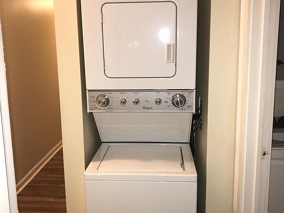 it has a back porch area to relax comes with washer dryer stack to use central Air & Heat combo, quite ares close to downtown area