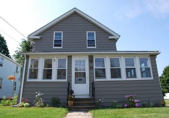Status: Pending. Updated in all major areas, and with a pleasantly painted interior, this 3+ bedroom Cape style home, has two bedrooms up and 2 adjacent bedrooms on the first floor. Combining them to create a more open space would be a simple modification. This home has unique character and offers many possibilities for creating the perfect mix of old farmhouse charm and modern amenities. This home also features a 97% energy efficient, wall-mounted Buderus boiler with an on demand hot water tank: all natural gas. With full energy updates including air sealing and blown insulation, the interior keeps a very cozy, efficient, and even winter heat. You won't feel heat spikes or drafts and with natural gas, your bills will be very manageable. The expansive wrap-around porch adds 300 bonus usable square feet from which to enjoy many an afternoon storm. This space can easily be used year round! Aside from the character this space provides, the porch also works as a passive insulator for maintaining interior temps year round. Heading outside, the spectacular yard features a beautiful 20 x 20 stone-paver patio situated in the shade, with arborvitae lining the full length of the east edge of the property, and beneath a lush, whispy River Birch. You will be so relaxed on a breezy summer afternoon, grabbing your own plump tomatoes from your large garden plot, and sipping on a cool drink on the patio, or lying on the cool grass in the back portion of the yard. This portion of the yard is fully fenced for safety, play, camping, etc. You won't believe how bright the stars are here, even so close to the town! With a very short stroll to Cottage Street, you get the best of both worlds. You are close to the bike path (ride all the way to Amherst if you like), restaurants galore, and you won't need to find parking to enjoy Easthampton's community events. Just walk from home! Do all your errands on foot if you want! Not-to-mention, after your delicious bbq on the patio, you can stroll down to one of Easthampton's oldest community gathering places: Mt Tom's Homemade Ice-cream! This home is an in-town oasis and the perfect home whose layout can grow to suit your changing needs! Ask about Sellers' plans for expansion....the best way to grow your equity! Its truly a gem fit for first time to forever homeowners who want the close community feeling in town living brings! Seller offers buyer $2500 cash back at closing for full asking price offers, for your choice of upgrades!