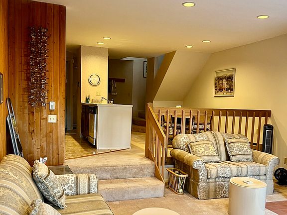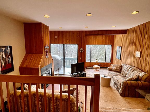 Treetop model ready for upgrading. Open floor plan and living area has beautiful wood panelling. Two bedroom & 1.5 bathrooms. Loft on third floor can be used as 3rd bedroom, office/studio. Deck has lovely view of woods & can be expanded further. Close to the ski area and the East Lodge which has the snack bar, outdoor pool, children's pool, tennis courts, platform courts and entrance to the 3.5 mile trail around Burr Pond.