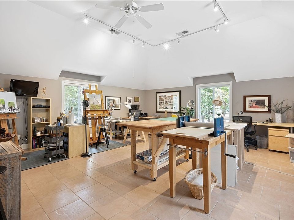 - Attic, Ceiling Fan(s), Cathedral Ceiling(s), Fireplace, Jetted Tub, Main Level Primary, Multiple Closets, Smooth Ceilings, Window Treatments, Entrance Foyer, Eat-in Kitchen