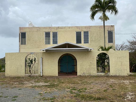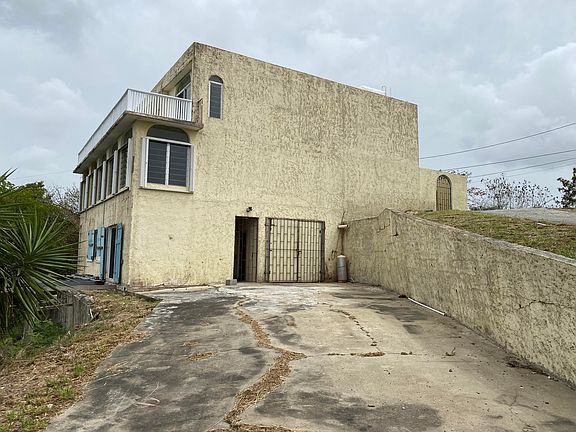 High on the hill with panoramic and sea views sits this large island home. House consists of 3 bedroom 2 1/2 bathroom plus 1 bedroom apartment. Garage with a huge workspace and storage. Solar water heater. 2 cisterns. Roof recently recoated. As a big bonus 4 adjacent additional lots are included in the sales price. Total acreage including the1/2 acre the house is on amounts to over 1.7 acres. You can renovate the property to your liking and needs to make it into your own style home.