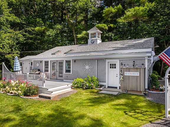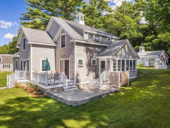 Tucked away down a tree-lined gravel drive, yet minutes from pristine beaches, boutique shops, and gourmet dining, this quality built, contemporary home is sited on a .73-acre lot. Its thoughtful design invites an abundance of natural light into generously sized rooms, offering an open floorplan that flows effortlessly. The living room, graced by a cozy gas fireplace, seamlessly connects to a rear deck, creating an inviting space for gatherings. Adjacent, the dining room and chef's kitchen, adorned with custom cabinetry, high-end appliances, and an expansive island, form the heart of the home. An en-suite bedroom on the first floor, opening to a deck overlooking the lush lawn, is a primary bedroom option. Upstairs, an additional primary suite boasts a luxurious bath, providing a private retreat. Two additional guest bedrooms and an in-home office share a bath on this level. Completing this property is a charming seasonal cottage, an ideal retreat for guests, and an oversized detached one-car garage. Located moments from York Village and within easy reach of Portsmouth and Boston, this property is a true rarity, combining tranquility with convenience.