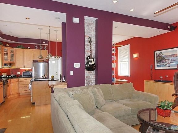 Urban style living in Arlington! Unique wide open loft-like first floor with 10' ceilings flows freely between kitchen, living room and dining room. Granite and stainless steel kitchen with functional layout and center island. Huge energy-efficient windows welcome in light all around. Fully wired for sound, security and network connections, this extensively renovated Mansard roofed home is pristine and move-in ready. Cast iron gas stove means instant atmosphere on those chilly New England nights. Upstairs skylights make it bright and airy. Two generous cathedral ceiling bedrooms with huge closets, and third bedroom with custom built-in desk make this the perfect work from home environment. Two car garage & extra driveway makes parking a breeze. Gut renovated down to the studs in 2001 means that you can relax on the 3 season front porch on Day 1. Buses 77 & 79 at end of street. Bracket School location. IF BUSY PLEASE PARK NEARBY @ Ottoson or Mass Ave
