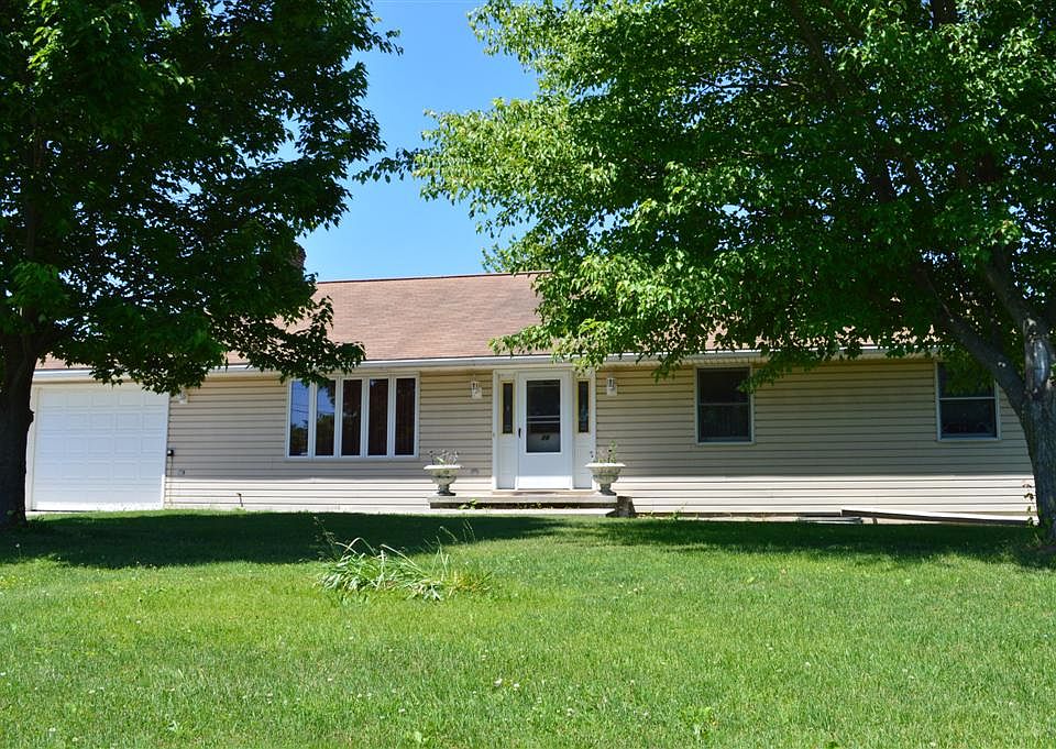 Spacious and open floor plan! 3 bdrm, 2 bath ranch with hip roof features vaulted ceiling, Great Room, Family Room, covered rear patio, full unfinished basement and 1-car attached oversized garage. The kitchen, with large breakfast bar, is open to the Great Room and Dining Area. 2-car detached garage (43??? long x 28??? wide) with 2nd floor & shed (32' long x15' wide). Hall bath has walk-in shower, Master bath has whirlpool tub.