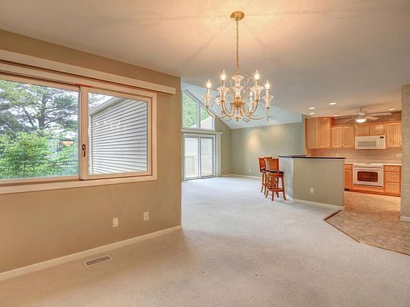 Beautiful bright and open floor plan awaits! The living room features a wall of windows over looking the golf course with a large private deck. Cathedral ceiling enhances the space, huge master suite with lots of closet space, updated kitchen and baths, lower level features a walk out private patio, family room with built in bookcases, bedroom and utility room with built in cabinets. Wired for surround sound. Low property taxes.