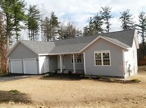 Country style ranch features farmers porch to relax on while overlooking the cul de sac. Vaulted ceilings in living room and kitchen give a wide open feel to this home, extensive use of hardwood and tile flooring, and granite tops on upgraded cabinets. Master suite with bath and cathedral ceiling on one side of home, with 2 additional bedrooms and a 2nd bath on the other side. Very energy efficient construction and heating system, all underground utilities, town water and sewer with natural gas. Fully landscaped yard backs up to some great woods for privacy.