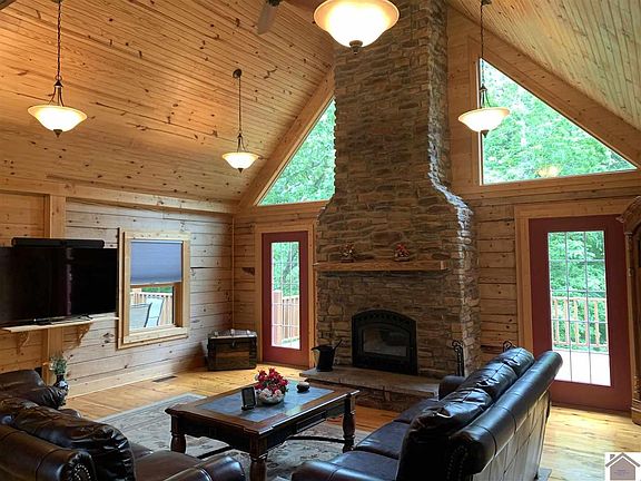 Lake Area Living at it's Finest! This fine 3BR/4BA log home in Western Shores Estates on beautiful Kentucky Lake has approx. 3,352 sq ft of living space including a large master suite on the main level, a prominent great room with a rustic stone mantle, a huge finished walk-out basement with 9ft ceilings, and wonderful appointments and fixtures including stainless steel appliances. The large outdoor deck and basement patio area with a fire pit allow you to enjoy the peace and serenity of the surrounding woods. The large 24x36 detached garage is ideal for boat and ATV storage. Residents of Western Shores are able to enjoy the clubhouse with infinity pool, community boat launch and two community docks, and miles of scenic nature trails.