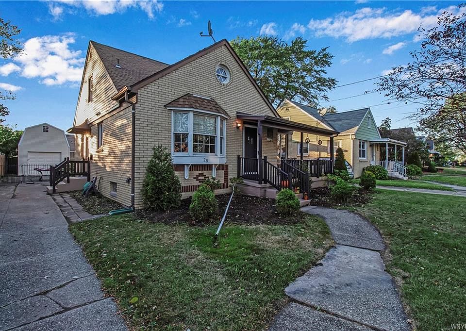 Conveniently located close to many conveniences, I-90, and within the Cleveland Hill school district - this BETTER THAN NEW, MOVE IN READY brick 4 bedroom, 2 full bath cape has all the updates you'd want and extras you wouldn't expect to have! Inside the kitchen you're welcomed with abundant cabinetry, large counters, breakfast bar seating, stainless steel appliances and open layout to the formal dining room showcasing hardwood floors, bay window and custom designed ceilings! The living room boasts more 1950's custom ceiling craftsmanship with cove corners and detailed reliefs. To the rear of the first floor- two generous bedrooms and tastefully remodeled tiled bath. Second floor features a master bedroom with full bath en-suite, a massive walk-in off the master with built in California closets spanning 14' and a forth bedroom with cedar closets! The basements boasts partially finished family room, central AC, glass block windows, and newer sump & HWT. Outside offers a large 1.5 car garage with full 2nd floor storage, architectural roof on main home & garage, wonderful deck and deep lot. All you have to do is move in! Showings begin Thu 10/15, offers will be considered by Tue 10/20