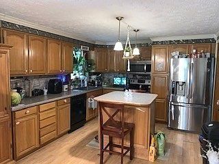 Price improvement!! Spacious 4-Bedroom home with many options to set up according to your needs. Upper floor has 3 or 4 bedrooms, living room, sun room, beautiful remodeled full bathroom and inviting spacious kitchen. Lower level has a large family room, fireplace, bedroom option and another beautiful, remodeled full bath with jacuzzi type tub. Most rooms have newer flooring. Kitchen has eat-in dining room area with lots of cabinets, center island and space to move around. Black and stainless steel appliances including refrigerator with ice/water, microwave, stove, dishwasher and new sink are included in the sale of the home. Kitchen leads out to a spacious sun room with sky-lite windows and sliding doors out to deck. Room currently has a disconnected wood stove that can stay with home. Home has top of the line water filtration system and one car garage under. The home sits on a nice size lot with a koi pond. 5 min. to I-84.