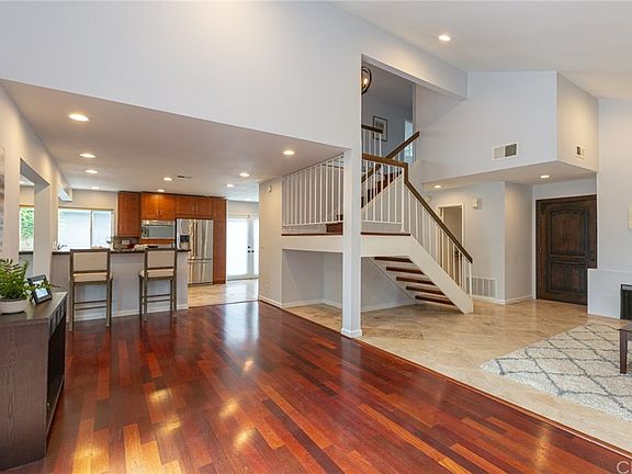 Location, Location! Luxury Turnkey home in Prestigious Northwood. Four bedrooms upstairs, guest half bath downstairs and two full baths upstairs. Upgrades throughout including, fresh designer color paint, vaulted ceilings, recessed lighting, wood flooring and fabulous travertine with tile inlays through the kitchen and large formal dining room. Gourmet kitchen with granite counters, slate stone back splash, and stainless appliances. Gorgeous windows and french doors welcome abundant natural light throughout the open floor plan. Laminate wood floors throughout upstairs. Large master suite with two closets and jetted tub and shower. Large vanity with double sinks and makeup counter. Three more large bedrooms boast walk in closets with Elfa shelving. Upstairs bathroom newly renovated including Floating sink vanity and large shower. Private back yard with high block wall, built-in BBQ, gas fire pit and soothing waterfall fountain in large patio plus manicured grass lawn. Two car garage with automatic door opener and direct home access, is clean as a whistle featuring new epoxy floors and so many storage cabinets. Desirable location directly across from association pool and tennis courts. Perfect home for families located in top rated award wining school district. No smoking, no pets. Tenant pays all utilities, Landlord pays HOA dues.