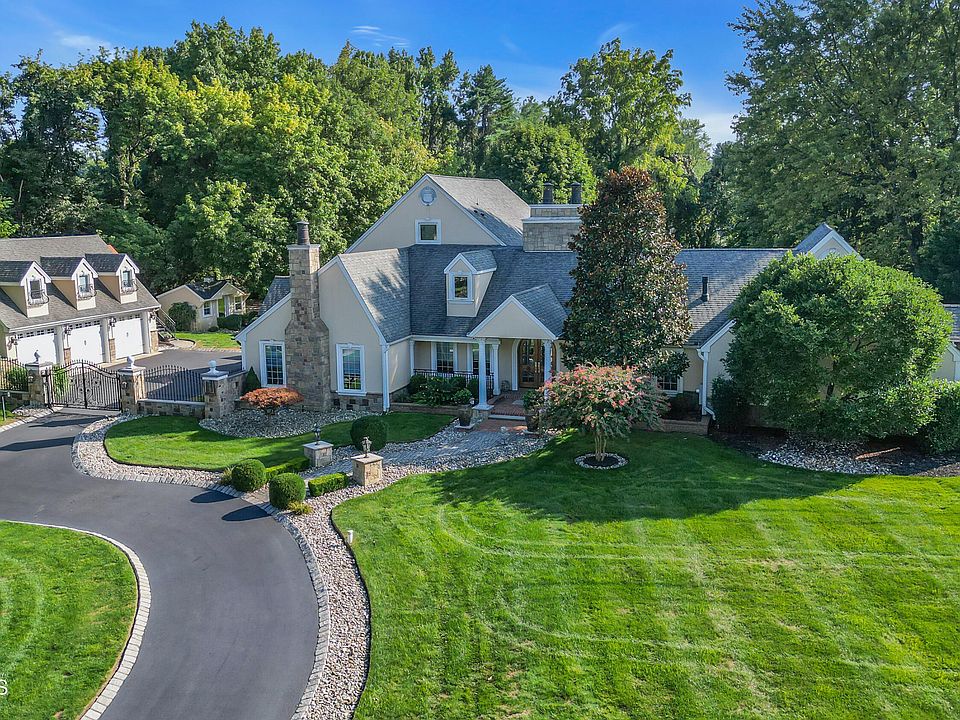 French doors then invite you to a meticulous outdoor entertaining area where you can relax alongside the heated pool and spa. The full outdoor kitchen offers a covered dining area, natural gas pizza oven & Lynx grill. The carriage house over the 3 car garage is the perfect private work from home space with its' own half bath and heating and air conditioning. A new Kohler gas generator, 2 outdoor storage sheds, laundry areas on both floors and vehicle charging station further the list of numerous amenities. Curb appeal and mature landscaping complete this move in ready property.
