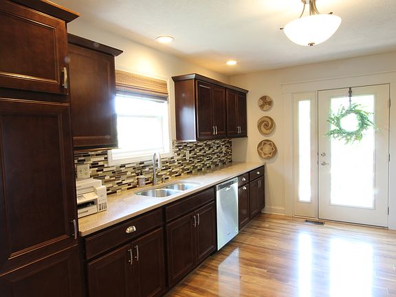 Very nice 3 Bedroom ranch home in a quiet cul-de-sac. Family room has a gas fireplace. Newer stainless appliances in the kitchen. Counter tops are Quartz. Kitchen also has a very nice pantry. Blinds and curtains remain with the home as do the kitchen appliances and the washer and dryer. No back yard neighbors. Currently set up for handicap entry however ramps are constructed so they can be removed. Full basement is ready to be finished. Basement has an egress window and a bath rough in. The owner added two feet in width to the original plans. The washer and dryer are in a separate approximate 6X10 room in the basement with a utility sink. The home has a High Efficiency "Power Vent" water heater. The furnace and air are a high efficiency Comfort Maker system. The garage is insulated and has gas heat and it also has 220 power available for tools or could be adapted to charge a battery powered vehicle.