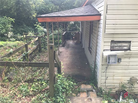 Amazing opportunity on almost a HALF ACRE in-town lot with a lovely creekside setting. Main level features 2 large bedrooms with sky high ceilings and original wooden floors. Welcoming living room with fireplace (decorative only) and easy access to the kitchen area. Off-kitchen backdoor could ideally lead to a large deck overlooking the backyard and creek. Main level laundry area with washer and dryer and a full bathroom. Newer Roof. Backyard is a private oasis with a full-flowing creek and large shady trees. House sits just a few blocks from grocery and retail shopping, hospital, public library and mere minutes to Downtown and UGA. **Sold AS IS. Bring your contractor. Cash or non-conventional financing only. No sight-unseen offers, please.**