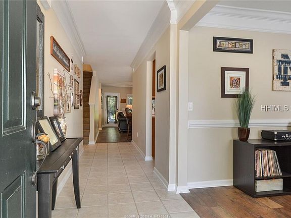 Cute upgraded cottage on the 11th tee in Pinecrest community with wooded view. Home has 3 bedrooms to include a downstairs master suite, 2.5 baths, den/dining room, laundry room, newly installed laminate floors, ss appliances, dual zone programmable HVAC, and freshly painted interior/exterior. Pinecrest is a friendly, safe community that is minutes from downtown Bluffton and Hilton Head. Many amenities to include a pool, playground, tennis courts, gym, golf course, basketball court, and more with a low POA fee. Don't miss this one!