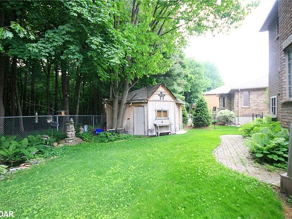 Peace and tranquility await you in this quiet court location. Situated in the prestigious Gables waterfront neighbourhood. Easy walk to beaches, parks, marinas, downtown walking trails and more! Close to both Barrie GO stations for commuters. Beautifully landscaped lot backs onto forested parkland. The inviting interior has a generous floor plan, ideal for casual get togethers or formal entertaining. Walk out from kitchen to deck and treed yard. Kitchen opens to sunken family room with gas fireplace. Upper level offers three generous bedrooms. Spacious master with walk-in closet, gas fireplace and full ensuite. Second bedroom has a walk-in closet and semi-ensuite bath. Lower level has a roomy recreation room with gas fireplace and plenty of storage and a workshop area. Oversized 2 car garage. Large insulated shed with electrical, concrete floors, man door and smaller roll up door. Ideal for storage or mancave. Very well maintained home.New High efficiency Furnace and AC (2014); New Shingles (2015); Deck (2012); sump pump 2021; water softener 2020; washer/dryer 2015