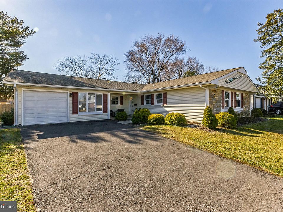 Looking for one floor, easy living? Welcome home to 28 Gimble Lane, in the beautiful and desirable neighborhood of Garfield. You will be impressed the moment you pull up the driveway and walk to your front door.. an abundance of natural light flowing through the home. Large, open concept of the living room and dining room combination is light and bright. This room is beautifully accented with a ceiling fan and chair rail molding. The wonderful eat-in kitchen which has stainless steel appliances, ceramic tiled floor and granite counter tops has been recently updated and offers plenty of counter space and cabinetry for you to enjoy cooking and entertaining. Off of the kitchen is a great size laundry room with additional cabinets for storage and a door leading out to the large and spacious backyard with a beautiful patio. Off the laundry room is an additional room which can be used as a den, exercise room, home office, play room etc. Access the one car garage from this room. The primary bedroom is spacious with a large closet and a beautifully updated primary bathroom. In addition, there are two large bedrooms with ceiling fans, a large hallway and an additional full bathroom. This home has many features including a new roof, a new sliding glass door, some newer windows, new gutters, new shutters, and recessed lighting. Centrally located near all major highways, easy access to Philadelphia and New York City. Showings by appointment.
