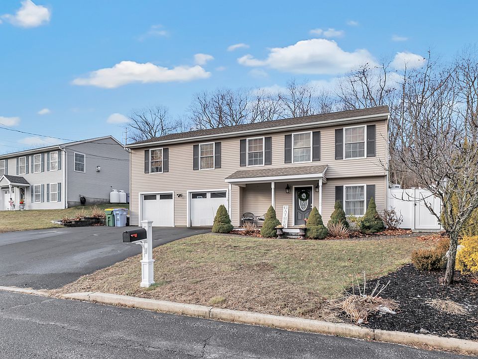 Welcome to 28 Glenford Drive, a stunning high ranch home that combines modern updates with classic charm. As you enter the home. you're greeted by a cozy family room on the first floor, excuding warmth and character, featuring updated decor. The level also includes a convenient laundry room a half bath and access to the two car garage. The upper level offers a spacious, open-concept layout with a designer kitchen that features beautiful granite counter and an island, seamlessly connecting to the living room. The living room area is a true highlight, featuring a gas fireplace and tastefully decorated creating the perfect space for relaxation and entertaining. This home boasts generously sized bedrooms, including a primary suite with an ensuite bath. there is also a well-appointed hall bath. the dining room opens into a rear deck, ideal for outdoor dining and entertaining. Step outside, and you'll discover a breathtaking stone patio with professionally designed walls, offering a private retreat. The current owner invested over $30k to transform the backyard into a serine oasis. The exterior of the home is maintained with low-maintenance vinyl siding, ensuring ease of care. nestled on a private dead-end road, this home offers peace and privacy while being close to all the conveniences you need. Don't miss the opportunity to make this beautiful property your own!