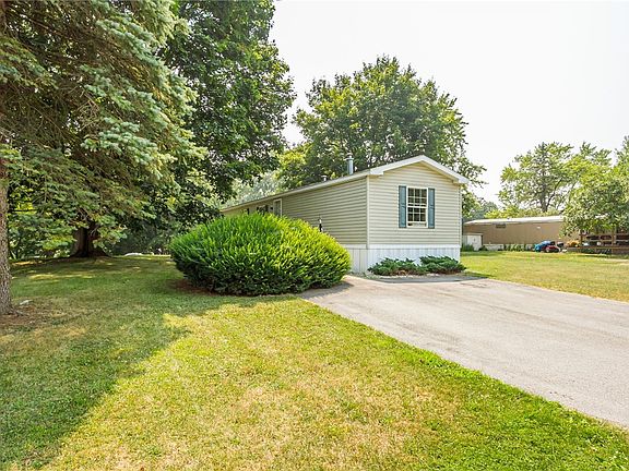 Enjoy One Floor Living in the Finger Lakes! Welcome to 28 Prestige Drive—Located in Peaceful Prestige Park Community Just 20 minutes to Canandaigua. This 3 Bedroom, 1 Full Bath Single-Wide Home Offers Almost 1,000 Sq Ft of Living Space. You’ll Be Greeted by Low Maintenance Vinyl Siding & a Private, Treed Setting. Inside, the Open Floor Plan Features a Light-Filled Living Room with Brand NEW Carpet that Opens Directly to the Kitchen—Perfect for Daily Living and Entertaining! Kitchen Boasts Breakfast Bar Seating Option, All Appliances Included w/a BRAND NEW Refrigerator. Convenient Laundry Area Located Just Off the Primary Bedroom & Full Bath. Thoughtful Split-Bedroom Layout Offers the Primary on One End & 2 Additional Bedrooms on the Other for Added Privacy. Double Wide Driveway Offers Abundant Parking for Gatherings.