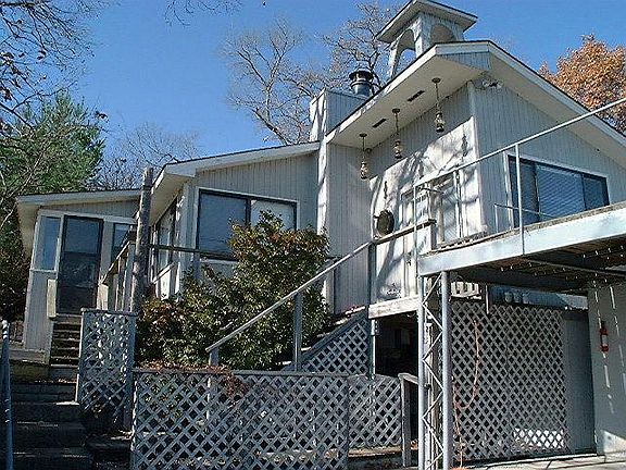 Nine property in a very good neighborhood. Great view of the main lake. Large deck and boat dock. Fireplace and sunroom. (This home has a partial mobile base.)