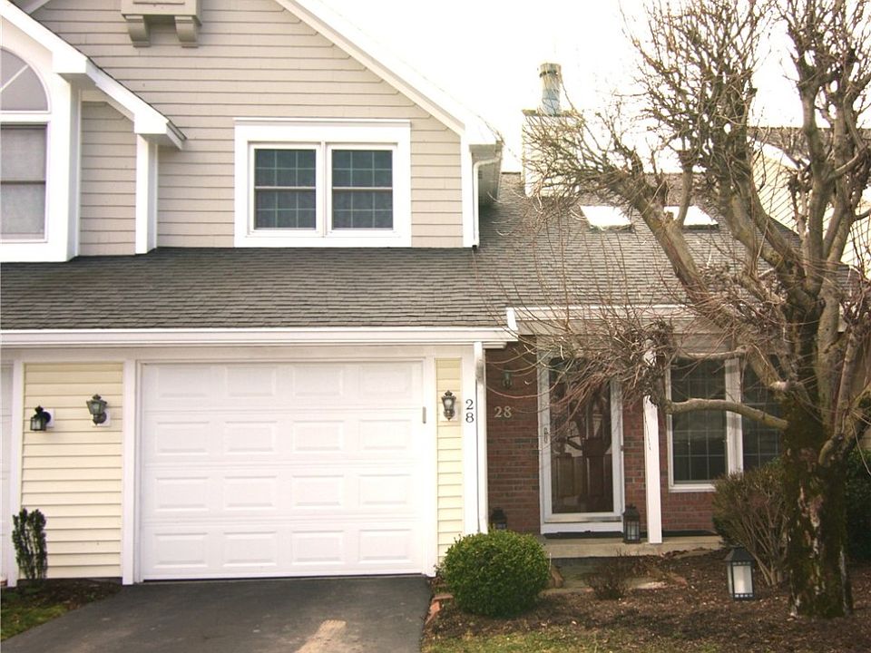 This charming townhome boasts numerous upgrades, enhancing its appeal and functionality. The spacious great room features vaulted ceilings that amplify natural light, thanks to skylights and large windows, creating an inviting ambiance. Adjacent is the formal dining area, seamlessly flowing into the bright kitchen, now equipped with added cabinets and a butcher block counter space. Take advantage of the main floor full bathroom for added convenience. Through sliding glass doors, the kitchen opens to a back deck! Upstairs, two generously sized bedrooms and a full bathroom await. The lower level presents a fully finished space, complete with a large floor-to-ceiling shelf, perfect for storage of extra appliances and more. Sliding glass doors open to the backyard, providing a seamless indoor-outdoor connection. Notable upgrades since 2019 include a new kitchen stove, dryer, garage door, and opener. Additionally- Nest thermostat and 3 new ceiling fans. Situated in a quiet, friendly neighborhood, this residence offers proximity to RIT, Strong Hospital, and U of R. Delayed Negotiations Monday March 4th, offers to be reviewed at 12pm.