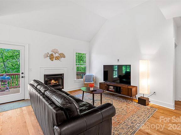 Charming 4 bedroom, 2/1 bath home nestled in the heart of Black Mountain. From the moment you arrive, you are captivated by the enchanting sounds of the babbling creek that borders the property. Come inside & discover a beautiful architectural design, highlighted by soaring vaulted ceilings & a cozy fireplace in the living room. Gleaming wood floors throughout add warmth & elegance. The spacious kitchen boasts abundant cabinets & counter space. Unwind in the oversized primary suite featuring tray ceilings & a fabulous en suite bath. Downstairs, the basement offers 3 additional bedrooms & a full bath along w/a huge 378 sq. ft. room- easy to finish as a media room, man cave, hobby room & more. Outdoor living is a delight w/expansive decks on both levels. The fenced backyard offers space for outdoor activities, while the firepit invites cozy evenings under the stars. Enjoy quick access to a plethora of local amenities where you can discover the charm of Black Mountain. See it today!