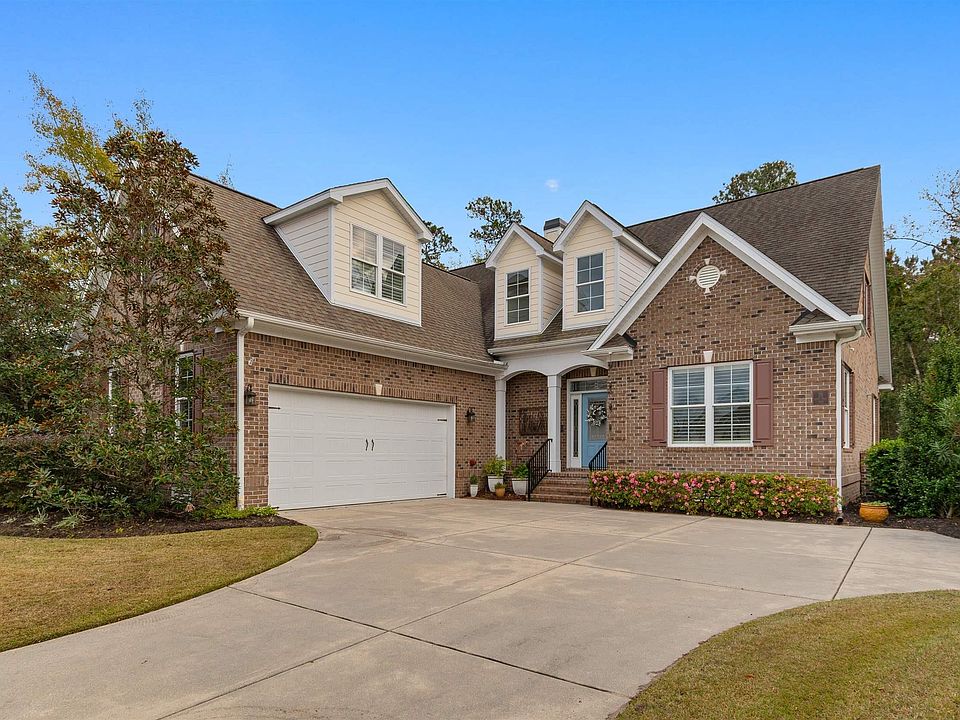 Imagine coming home to a place that feels like a retreat—where natural light pours through tall windows, the scent of dinner drifts from an inviting kitchen, and the backyard delivers calm seclusion with a spacious porch perfect for gatherings. This custom-built Quest Properties home in Waverly Bay blends craftsmanship with comfort, creating a refined yet welcoming space ideal for everyday living and effortless entertaining. Step inside to find crown molding throughout, bullnose corners, and cathedral ceilings that elevate the home’s elegant feel. The newly painted living area centers around a cozy natural gas fireplace—an inviting focal point to unwind or host guests—while the formal dining room features classic wainscoting for timeless charm. The main-floor primary suite offers convenience and luxury with dual walk-in closets and a spacious two-head tiled shower. Upstairs, two guest bedrooms each boast private ensuites, providing comfort and privacy for family or visitors. A flexible bonus room—perfect as an office, fourth bedroom, or media space—is pre-plumbed for a wet bar or additional half bath, allowing you to tailor the space to your lifestyle. Enjoy year-round relaxation in the large four-seasons porch overlooking a wooded backdrop. The yard is generous and pool-ready, with a concrete pad for grilling or gathering, plus an oversized garage, hot/cold outdoor shower, and a 220-amp outlet ready for a hot tub. Located in the gated community of The Bays, you’ll enjoy exceptional amenities including two pools (one a lap pool), a clubhouse with fitness room, newly painted pickleball courts, tennis court, basketball, volleyball, playground, pavilion and picnic area, firepit gathering space, and open green space for outdoor fun, pets, and play. In the sought-after Prince Creek area of Murrells Inlet, you’ll be near the MarshWalk, golf, beaches, dining, and everyday conveniences. Don’t miss the chance to make this impeccably maintained, move-in-ready home your own—schedule your showing today.
