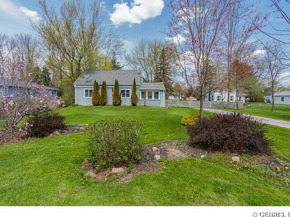 Open floor plan cape less than 2 minutes from RIT on over a half acre lot. Newer kitchen, bath, windows, electric service, furnace, and roof. Possible 3rd bedroom. Fully fenced rear yard with deck, patio, and over sized 2+ car garage. Large 2nd floor master bedroom.