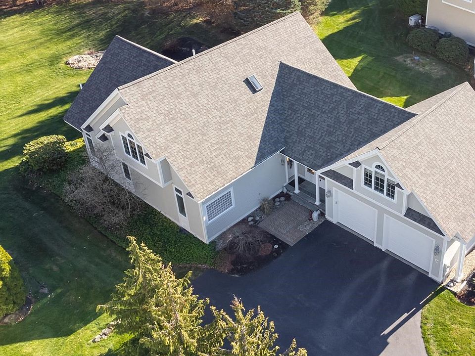 Luxury Living awaits in this Stunning Contemporary Cape with 1st Floor Master Suite located in the highly sought after Hawkins Glen community! This Home, loaded with Oversized Windows and Transoms offers an abundance of natural light and boasts quality craftsmanship and attention to detail throughout! You are greeted with 10ft Ceilings and a wonderful Open Floor Plan perfect for entertaining. The Spacious Gourmet Eat-in Kitchen includes a new Double Oven, Gas 5 Burner Cooktop, Granite Tops and Peninsula with seating. The Family Room offers a soaring Cathedral Ceiling, Fireplace, Custom Trim and is open to the Dining Room and Oversized Deck. A Large 1st Floor Master Suite with Jacuzzi Tub, Tile Shower and Walk In Closet, Laundry Room and 1/2 Bath complete the 1st floor. The 2nd Floor hosts a Loft/Office and 2nd Bedroom with En Suite Bath. You will find another Private Bedroom over the Garage. Hardwood Flooring, Newer Roof, Furnace and Exterior Paint. Enjoy the Clubhouse, In ground Pool, 17 Acres of Walking Trails and Beautiful Pond Views while the lawn maintenance and snow removal is done for you! Ideally positioned only minutes to Rte 93, 495 and all the stores/restaurants. Be home for the New Year! Agent related to Seller.