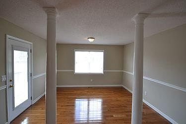 This property features a covered front porch, recessed lighting, gleaming hardwood-style floors, and plush carpet throughout the interior. The kitchen is equipped with modern appliances, and there are impressive columns and a fireplace in the living area. The primary bathroom provides a garden tub and a separate shower. Additionally, the open backyard is complete with a gorgeous deck for relaxation and entertaining.