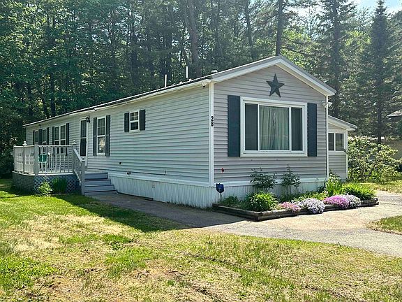 Enjoy all the NH lakes region have to offer at 28 Hemlock Dr. This single wide manufactured home offers a spacious fully appliance kitchen w/ vaulted ceiling and skylight, large living room, main full bathroom w/ laundry. Far end of the home is the main bedroom with full bathroom, second bedroom at the other end of the home, and a 3 season porch complete the home. With the warmer weather on the way, you'll enjoy relaxing, reading or entertaining on the paver patio just outside of the 3 season room. The home has a metal roof and 2 large sheds for storage. There is a private beach access for Tamworth residents to Lake Chocorua. Other recreational activities accessible from the property are fishing, trails for snowmobiling, walking paths and more. No age restriction and cat & dogs allowed.