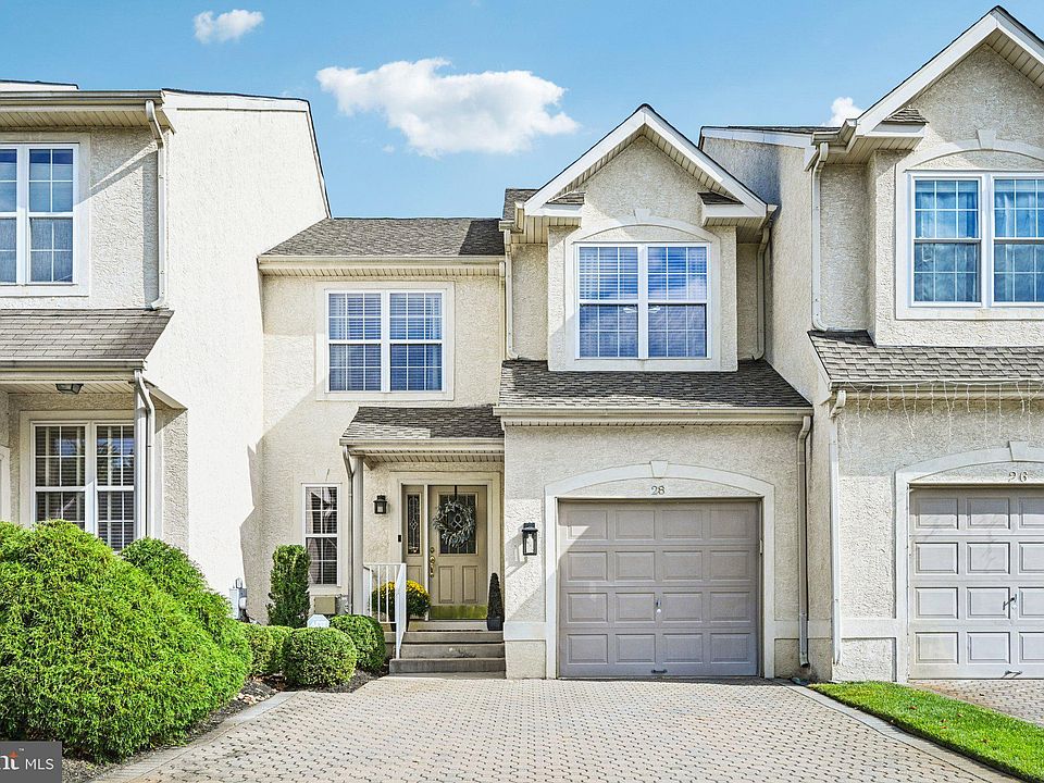 Rarely available in the highly sought-after Heron Pointe community in Marlton, this beautifully maintained 3-bedroom, 2-full bath, 2-half bath townhome features a finished lower level and sits on a premium lot backing to tranquil open space—offering both privacy and peaceful views. Step into a bright, sun-filled foyer featuring hardwood floors, a stylish powder room with pedestal sink and updated lighting, and a walk-in storage closet with built-in shelving. The open-concept Living Room, Dining Room, and Kitchen provide the perfect setting for entertaining or everyday living, all enhanced by gleaming hardwood floors. The kitchen is a standout with crisp white cabinetry, granite countertops, a subway tile backsplash, stainless steel appliances, recessed lighting, pantry closet, and access to a spacious deck with composite decking and brand-new vinyl railings—ideal for morning coffee or evening gatherings. The Living Room is warm and inviting with a gas fireplace and recessed lighting. Upstairs, you’ll find three generously sized bedrooms, two full baths, and a convenient laundry room with new flooring. The primary suite offers a vaulted ceiling, recessed lighting, ceiling fan, and a large walk-in closet, while the primary bath features a garden tub/shower combination. The finished lower level adds even more living space, complete with a half bath, new bathroom flooring, casement windows, recessed lighting, and plenty of storage. Additional highlights include a 1-car attached garage, upgraded landscaping, brick paver driveway, and updated exterior lighting. Major systems—including the roof, A/C, hot water heater, and sump pump—have all been updated within the past 8 years. A security system is also included. The HOA provides low-maintenance living with lawn care, sprinklers, snow removal in common areas, and access to the community tot lot. Ideally located near the NJ Turnpike, I-295, Philadelphia, PATCO High-Speed Line, parks, fine dining, and the Promenade Shopping Center, this home offers the perfect blend of comfort, style, and convenience. Opportunities in this community are rare—don’t miss your chance to make it yours!