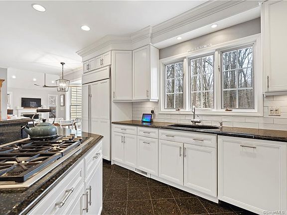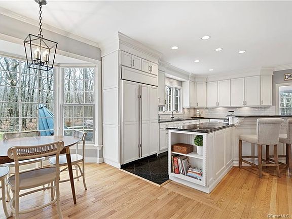 This sprawling Colonial has beautiful living spaces inside and out. Set back from the road in a quiet neighborhood, the property immediately feels like a private oasis. Stepping inside, you are greeted with hardwood flooring, an abundance of natural light, and large living spaces. The kitchen with center island, boasts granite counters and a subway tile backsplash. This opens to a charming dining nook, where you can enjoy casual meals or conversation with loved ones. A formal dining area allows for dinner parties, after which you can retreat to the spacious living room with fireplace. Also on the main level, a cozy sitting room with a gas fireplace where you can enjoy quiet moments at the end of the day. Upstairs, find four well-sized bedrooms with walk-in closets, including the primary ensuite. Dont miss the finished basement to use however you desire. Outside, step onto the patio and enjoy the built-in gas grill and fire pit. Situated on almost two acres of land at the end of a cul-de-sac. Schedule a showing today! Highest and best due 12PM Tuesday 4/12