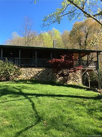 VIEWS, WATERFALL CREEK, PRIVATE YET CONVENIENT, AUTHENTIC MOUNTAIN CABIN - We have it all right here! This charming rustic home with views for miles from the wrapping deck features wood-clad interiors and there is a horse barn on the property. The rustic flavor of the home fits into the landscaping. Reclaimed wood add to the historic feel of the home. In the kitchen, weathered white cabinetry/white wood contributes to the cozy atmosphere. Outside, the home has a deck that looks out over the pond, layers views with a rushing creek to the side with tons of outdoor space. The horse barn is large enough for two horses or hobbies along with a dressed up shed. Rustic 5quarter board cabin on bold Martins Creek....all surrounded by conservation easements and country peacefulness. Plenty of rooms and bathrooms for the entire family or as a vacation rental, extra sitting rooms, offices and room to roam. You have found that remote cabin that is really not too far away from Waynesville, Maggie Valley and Asheville....best kept secret!