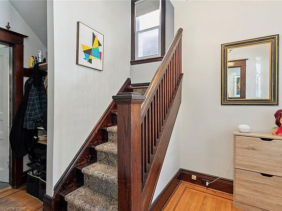 Charming, bright 1920s built solid brick 2.5 storey home in desirable south Hamilton Neighbourhood adjacent to Gage Park. Home offers large living room, old style formal dining room and ample kitchen space with white cabinets, stainless steel appliances and attractive butcher block countertops. Second floor has 3 bedrooms, including a very spacious primary bedroom and a 4 piece bathroom with clawfoot bathtub and shower attachment. Third floor attic space with stairwell access offers the potential for an additional 200-300 sq ft. of living space or ample storage/exercise area. Basement is accessible through separate side entrance from large private driveway. Aesthetic, private rear yard with deck and sitting area and a spacious detached garage. Walking distance to Gage park, grocery stores and trendy Ottawa St N commercial area.