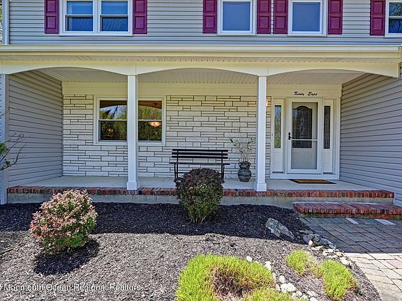 Welcome home to this beautiful, meticulously cared-for gem on a quiet, wide street. The sun-drenched two-story foyer welcomes you into this spacious, updated home. The light and bright kitchen features wood cabinets, Corian counters, center island & newer stainless steel appliances. Gleaming hardwood floors in the living room, dining room & one BR. Hardwood under carpeting in other 3 BR's. The primary BR has a walk-in closet & ensuite tiled bath with dual sinks. Newer AC & furnace 2021, all windows replaced. NO wallpaper. Finished basement with plenty of recreation space, 1/2 bath, cedar-lined closet & lots of storage. Sliding glass doors from both kitchen & large family room lead to the deck & beautiful yard. Blue Ribbon East Brunswick schools. Close to shopping, restaurants, highways.