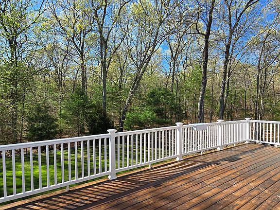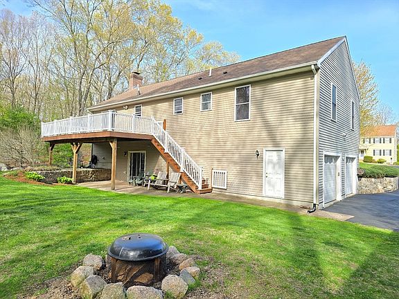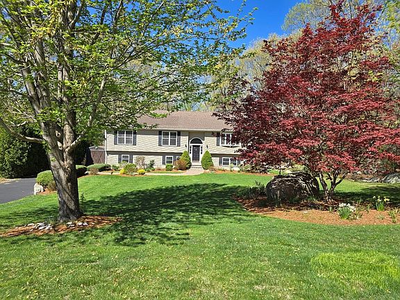 The setting and landscape of this home is absolutely stunning! Not only is located in a beautiful cul-de-sac neighborhood, but the large flat backyard abuts the Hopkinton State Park! Follow a path right from your yard and explore 100's of acres filled with hiking trails that lead to one of the nicest parks in the area with boating, swimming, fishing, and more! This is NOT your typical split level. Built in 2004, this home has a large open living space with soaring ceilings! The kitchen has granite counters with center island and is wide open to the living and dining rooms with floor to ceiling stone fireplace. Updated hall bathroom, and three spacious bedrooms including the primary with a full bath with a walk-in river rock shower! Hardwood flooring throughout the 1st floor. More space in the lower level with a stand alone gas fireplace and sliders to the back patio. Big 2 car garage, huge deck, central air, and massive shed! The front yard is simply gorgeous!