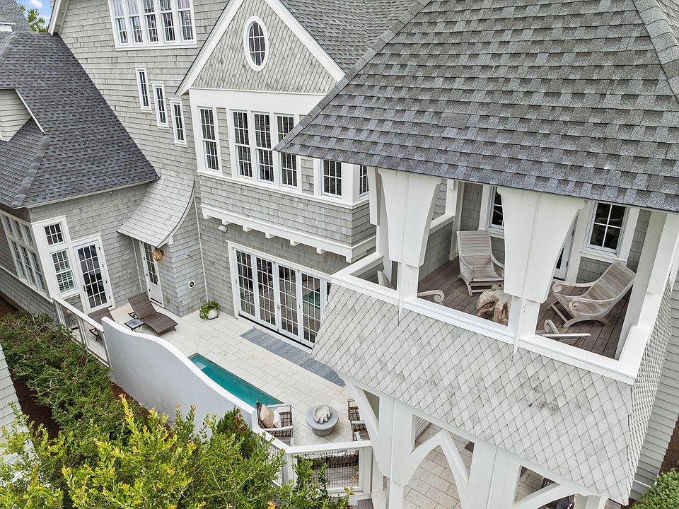 This stunning four-story residence, located within the prestigious Grace Point community, just south of 30A, has never been rented and is elegantly appointed with custom designer furnishings. Ownership in Grace Point includes the opportunity for a WaterSound Club membership, granting access to world-class golf, tennis, a state-of-the-art wellness center, and newly released Camp Creek amenities.Upon entering this sprawling home you will find reclaimed beams and salvaged hardwood floors, Venetian plaster, Carrara marble surfaces, and custom woodwork throughout. The open-concept living/ dining areas seamlessly flow into a gourmet chef's kitchen, complete with custom cabinetry, a professional Wolf range, Sub-Zero refrigeration, quartz countertops, and a floor-to-ceiling pantry. For added convenience, a custom second pantry features a Sub-Zero wine cooler and dual drawer refrigerator. Indoor and outdoor living merge with bi-fold doors that open to a courtyard, featuring a private heated pool and a fully-equipped outdoor kitchen. The second floor offers a generous living space with a wet bar, bunk room and three expansive primary suites all serviced by a full-service elevator. Additional guest rooms, dual offices and not one but two laundry rooms are also found on the second floor along with an oversized two-car garage equipped with an 8,000 lb. capacity lift for a third car. The third level is where you will find the main suite with a second wet bar and seating area. This suite features a vaulted ceiling with wood and beam accents, dual walk-in wardrobes, and a sleek ensuite bath adorned with Carrara marble, a double vanity, and a luxurious soaking tub. The fourth-floor viewing deck, the highest in Grace Point, offers panoramic views of the Gulf of Mexico.