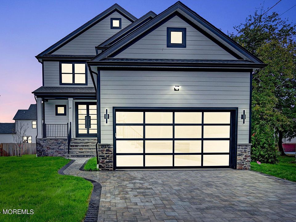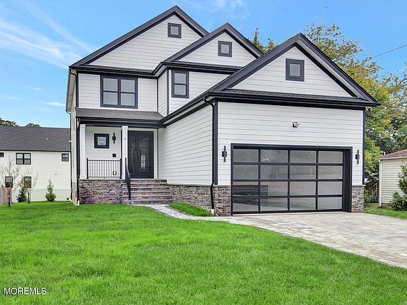 Welcome to this stunning, NORTH FACING brand-new construction home in the highly sought-after Marlboro Blue Ribbon School District. Spanning 3,100 square feet, this luxurious residence features 5 bedrooms and 4 full bathrooms, designed with exceptional attention to detail and top-of-the-line finishes throughout. With its modern exterior boasting a combination of shiplap hardy board and stone, and an inviting 8-foot wrought iron and glass double entry door, this home radiates elegance and contemporary charm. Step inside to be greeted by an open floor concept, 9-foot ceilings, and recessed lighting that illuminates the entire home. The first floor offers convenience with a bedroom and full bathroom, making it ideal for guests or multi-generational living. Solid 5.25-inch hardwood floors extend through the home, while the custom hardwood staircase, with wrought iron spindles, adds to the sense of luxury. The kitchen is a chef's dream, featuring double-stacked cabinetry, a stunning quartz waterfall island, quartz backsplash, and a professional Thermador stainless steel appliance package. With a pot filler and professional WiFi exhaust system, the kitchen is both functional and stylish.